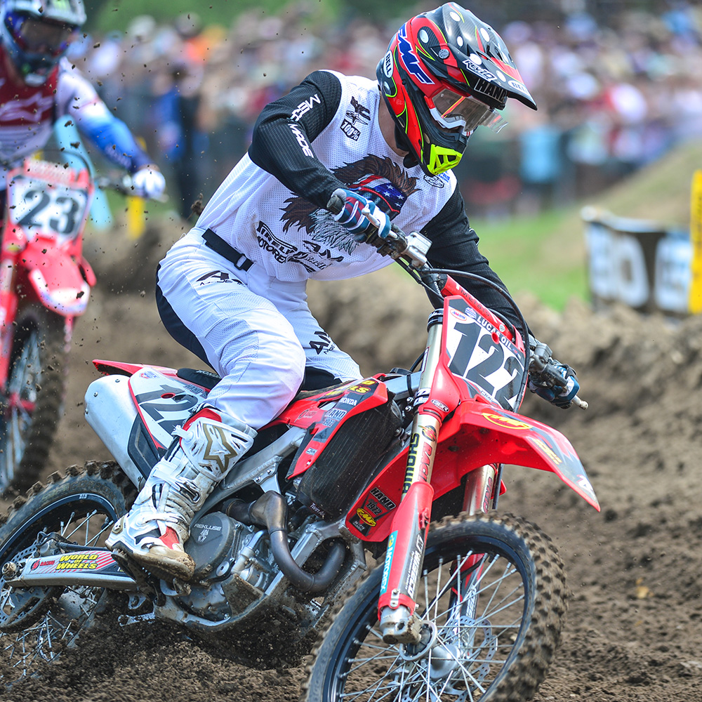 • White pant uses heavier fabric for front of knee for extra durability from roost and crashes